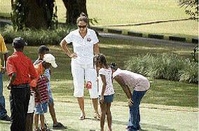 Donna Duncan Scott (centre), takes in the action from the mini-putting competition last Sunday at the JMMB Cup Family Brunch in Ocho Rios. - Contributed