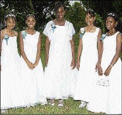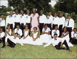 Venet Dixon (centre), principal of New Horizon Preparatory School in Savanna-la-Mar, shares a photo opportunity with school leavers at their graduation ceremony, which was held at Faith in Christ Ministries Church in the Westmoreland capital on July 2. - Photos by Noel Thompson