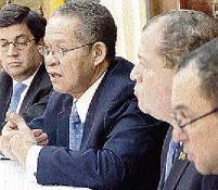 From left: Luis Alberto Moreno, president of the IDB; Prime Minister Bruce Golding; Audley Shaw, minister of finance and the public service; and Don Wehby, former minister without portfolio in the Ministry of Finance, at the January signing for the IDB loan. - file photos
