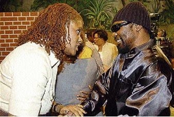 Michelle Wilson-Reynolds of Capital and Credit Financial Group has a word with 'Toots' Hibbert, the surprise guest performer at yesterday's Breakfast with the Stars, at the Wycliffe Bennett Studio at CPTC.