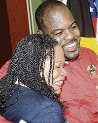Dave Wilson has a warm hug for retired Governor Sonia Anderson at the Caribbean District Optimist International 18th annual district convention at the Gran Bahia Principe Club and Resorts in Runaway Bay, St Ann, on Saturday, August 22. - Rudolph Brown/Chief Photographer
