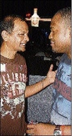 Supreme Ventures' Wayne Boodasingh (left) hobnobs with André Boswell of Red Stripe during Frenchmen in Drax Hall, St Ann on Sunday. - Contributed