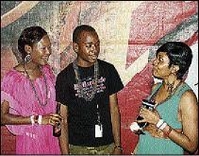 Craig Kelly, promoter of the party, 'Hallucinate', hangs out with the women of Red Stripe, Safia Cooper (left) and Renee Wong during the party on Sunday in St Ann, part of the Red Stripe Bold Escape weekend. - Contributed