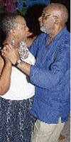 Left: Stafford and Sheila Murray refuse to leave the dance floor. Right: Queen of Queens in New York, Jennifer Hines, rents her own tile on the dance floor at the Merritone Heroes weekend family reunion party at Hedonism III in Runaway Bay last Saturday night.