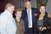 Friendly Competition? Stewart Motors' Richard (left) and Diana Stewart (second left) get a share of the limelight with Toyota Jamaica boss John Connell and his wife Ren at the launch of the new Land Cruiser Prado at Devon House on Thursday.