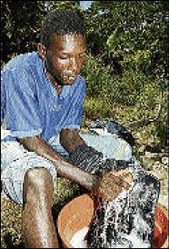 HE SAT with his back bent over a tub, scrubbing dirt from a pair of blue jeans. Items of clothing hung somewhat carelessly on the metal pipeline nearby. This is how Richard McLean, a resident of Watermount, St Catherine, and numerous others get their laundry done.