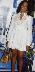 The gorgeous Kelli Magnus, daughter of morning man Alan, makes a statement in white at the Maco/CPJ-combined anniversary celebration on Saturday. - Photo byJanet Silvera