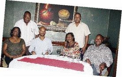 Executives of RBTT Bank take time out with their Montego Bay-based clients after dinner at Marguerites, along Gloucester Avenue, Montego Bay, during Restaurant Week last Friday. Seated from left are Joy Smith and husband, Ralph, (behind her); Howard Dyer, RBTT's securities investment adviser; Yvonne James with husband, Sam, (standing behind her); and Miguel Walker, RBTT's business development manager. - Photo by Noel Thompson