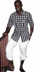 Rock out this season in this Perry Ellis baby-blue polo shirt, jazzed up with purple trim on the neck and sleeves, and a pair of blue jeans. - photos by Latoya Grindley
