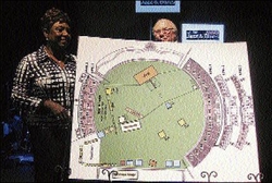 Turnkey Productions' Walter Elmore (right) and Minister of Culture, Youth and Sports Olivia 'Babsy' Grange with the layout of the Trelawny Multi-purpose Stadium for the 2010 Jamaica Jazz and Blues Festival. - photos by Mel Cooke