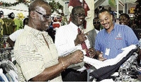 Above: Mayor of Kingston Desmond McKenzie (left) points out the features of a shirt to Senator Dwight Nelson, Minister of National Security, and Christopher Barnes, The Gleaner's deputy managing director. The three were taking part in Wednesday's 'Christmas in the City: Downtown Comes Alive' shopping spree. They were at Ammar's on King Street.