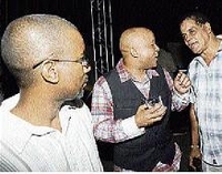 1 Health Minister Rudyard Spencer seems to be tending to Guardsman's Chief Executive Officer Valerie Juggan-Brown.2 Lt John McFarlane spends time with Valerie Juggan-Brown.3 From left: Douglas Vaz, cigar man Joseph Adduci and Col Trevor MacMillan in...