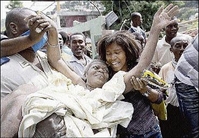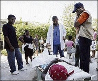 PORT-AU-PRINCE, Haiti (AP): Some of the dead in this shattered city line the roads, carefully placed garments shrouding their faces. Others are carried into the hills for quick burials. Hundreds are arrayed in a macabre tangle of limbs outside a morgue, just feet from the grievously wounded.
