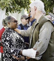 Former president and United Nations special envoy for Haiti, Bill Clinton, greets an injured woman while touring the General Hospital in Port-au-Prince, Haiti, Monday. Clinton promised that his foundation would provide medicine and a generator to the capital's general hospital so doctors there can work through the night.