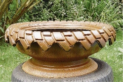 DENNIS ECKART has found a way of turning trash into beautiful works of art. He has been 'sculpting' old tyres into planters and 'Grecian' urns; things of beauty for plants.