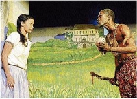 Jestina (Angelita McDonald) explains her pregnancy to slave overseer Joe (Peter Abrikian) during the 'White Witch' play in Montego Bay last weekend.